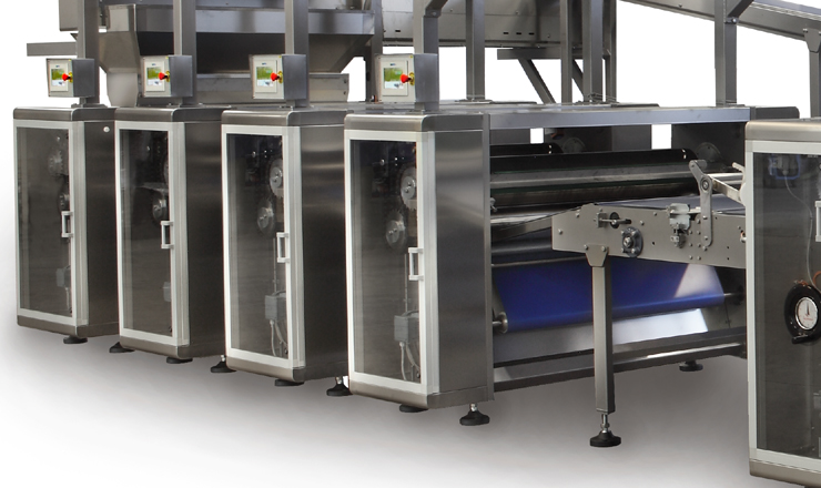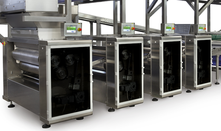 number of sheeting stations is determined by the length of the oven and by the feed speed of the dough sheet